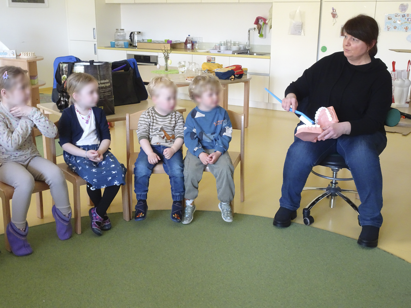 Die Zahnärztin besucht den Kindergarten „Am Kornfeld“