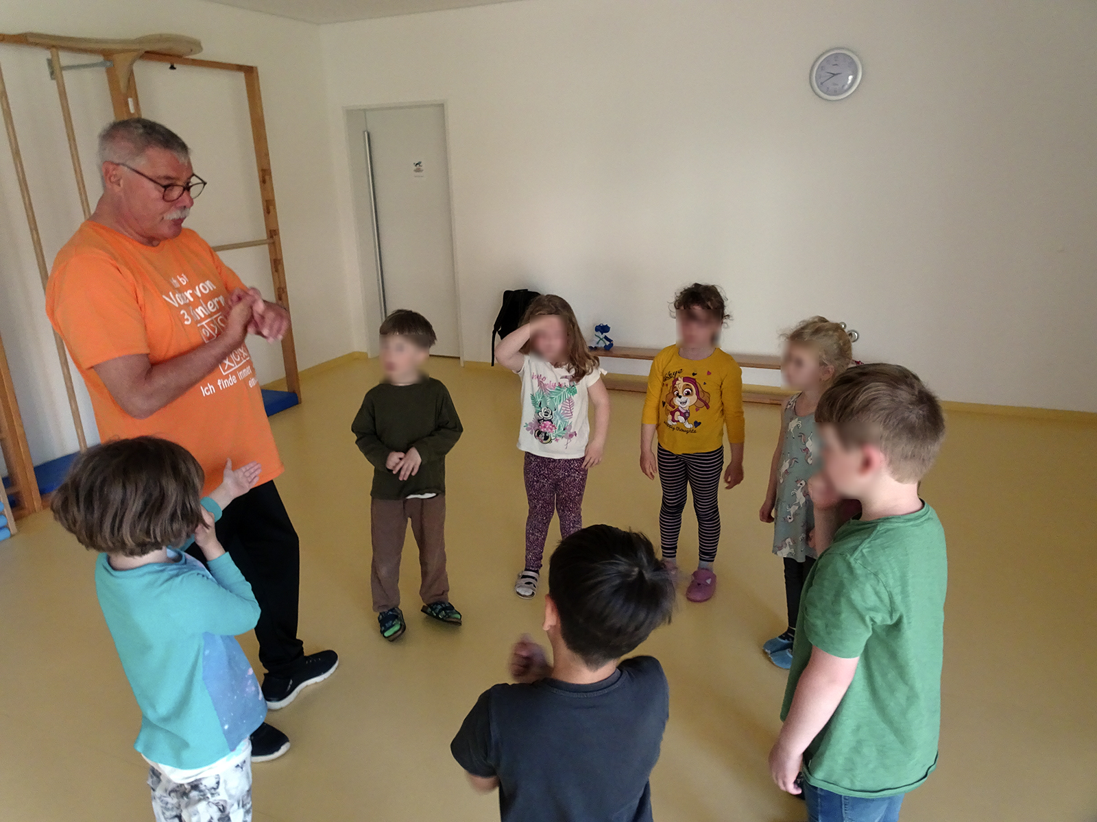 Das Kursmaskottchen „Ju-Ju“ begrüßte die Kinder und begleitete sie durchs Projekt. Der Trainer führte ein abwechslungsreiches Programm durch, mit dem Einsatz von Bildkarten, Bilderbuch und Gesprächen. Die Theorie wurde anhand von Spielen und Rollenspielen in die Praxis übertragen. Die Kinder waren von Anfang bis Ende mit Begeisterung dabei.